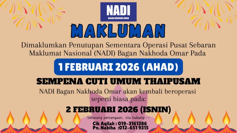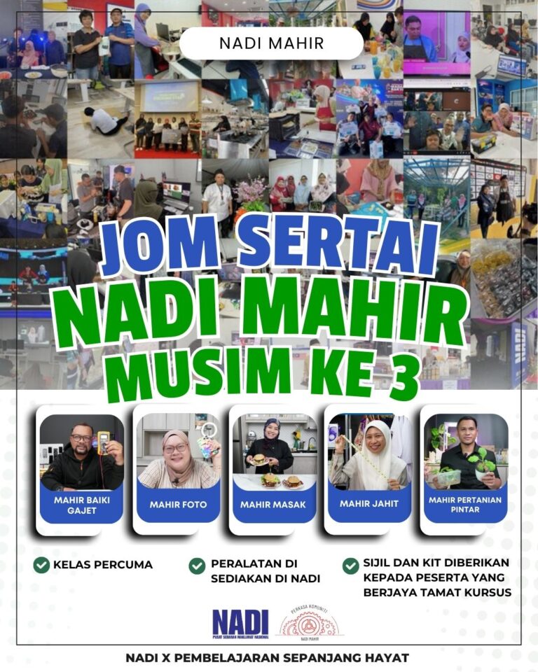 Tarikh : 15 Januari 2026Masa : 9.30 Pagi – 11.00 PagiTempat : NADI Bagan Nakhoda OmarKaedah Penyampaian : OnlineBilangan Peserta : 1 Orang Program Mahir Jahit merupakan satu inisiatif kemahiran yang dianjurkan bertujuan untuk memberi pendedahan serta latihan asas dan lanjutan dalam bidang jahitan kepada […]