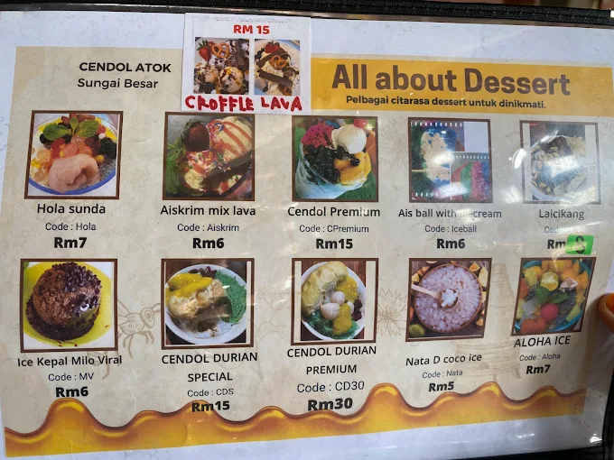 Warung Cendol Atok ini terletak kira-kira dalam 500 meter dari Pusat Internet Tebuk Haji Yusuf. Warong ini terletak berhampiran dengan jalan utama Lebuhraya Klang-Teluk Intan dan terkenal dengan aneka jenis cendol yang disaji untuk peminat tegar yang menggemari cendol. Di sini juga ada menyediakan makanan melayu seperti Mee Udang, Laksa dan lain-lain serta makanan barat seperti Chicken Chop, Spagetti dan lain-lain.